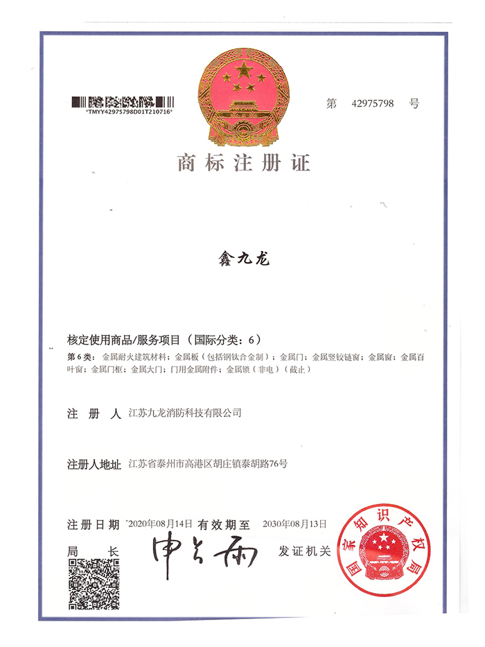 您的當前位置: 首頁 > 案例信息 > 榮譽資質 > 商標注冊證書